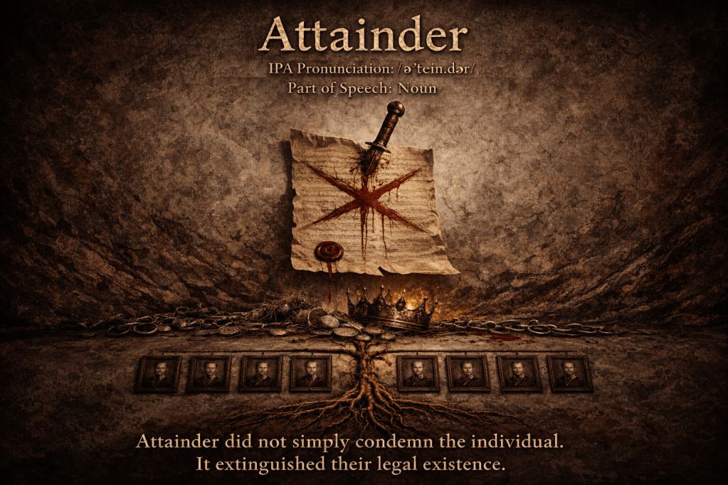 The loss of civil rights following a conviction for treason or felony, often imposed by parliamentary act.