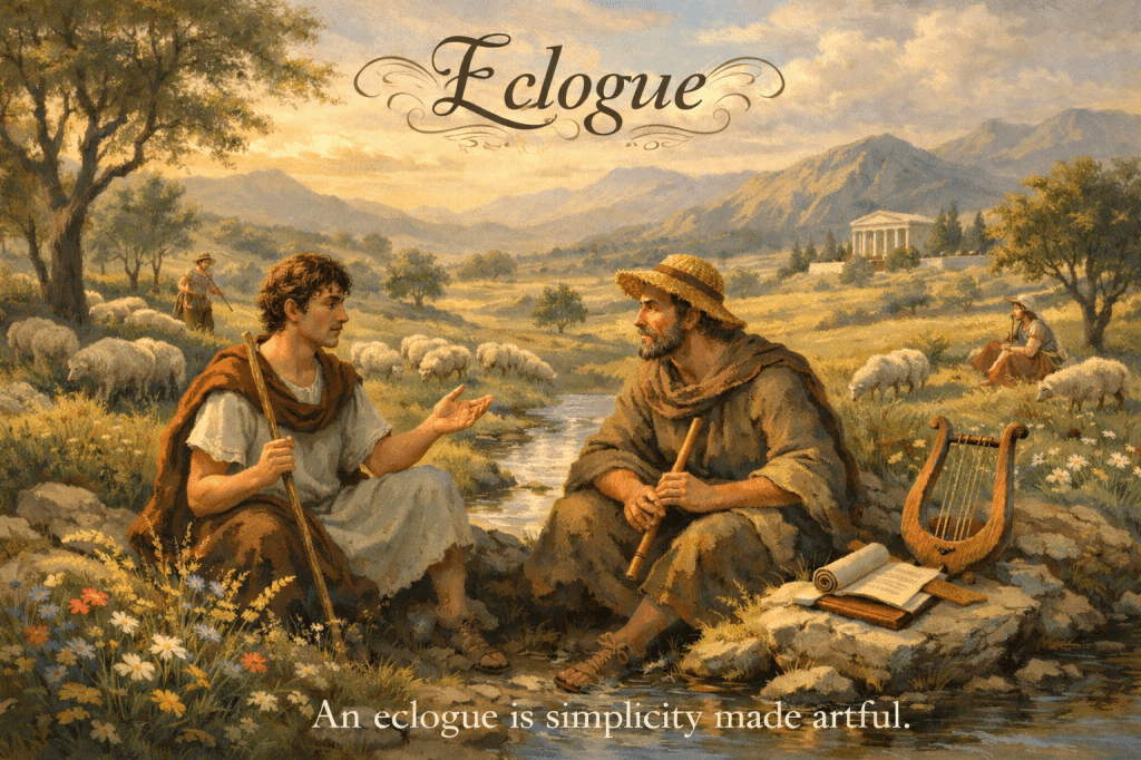 A short poem, often dialogic, traditionally set in an idealized rural landscape.