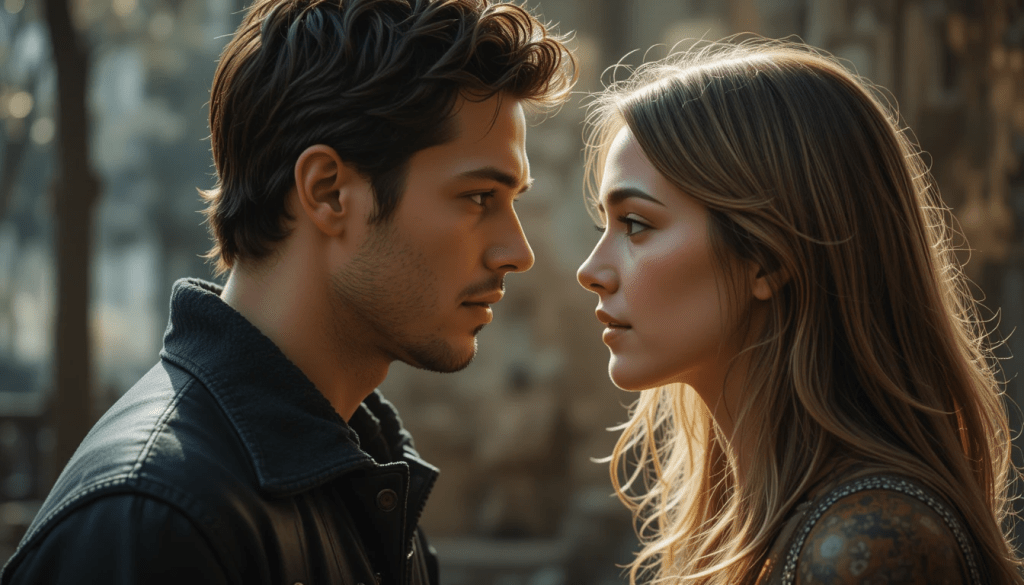 Mara lo miró directamente a los ojos, sintiendo una conexión que iba más allá de las palabras. Una sonrisa surgió en sus labios, no de certeza absoluta, sino de una paz inesperada. Porque en ese momento, Mara sintió que lo que compartían era un lenguaje sin palabras, una verdad que no necesitaba ser descifrada. Era como si cada mirada y cada gesto construyeran un puente invisible entre sus almas, algo tan profundo que ninguna explicación podría capturar su esencia.