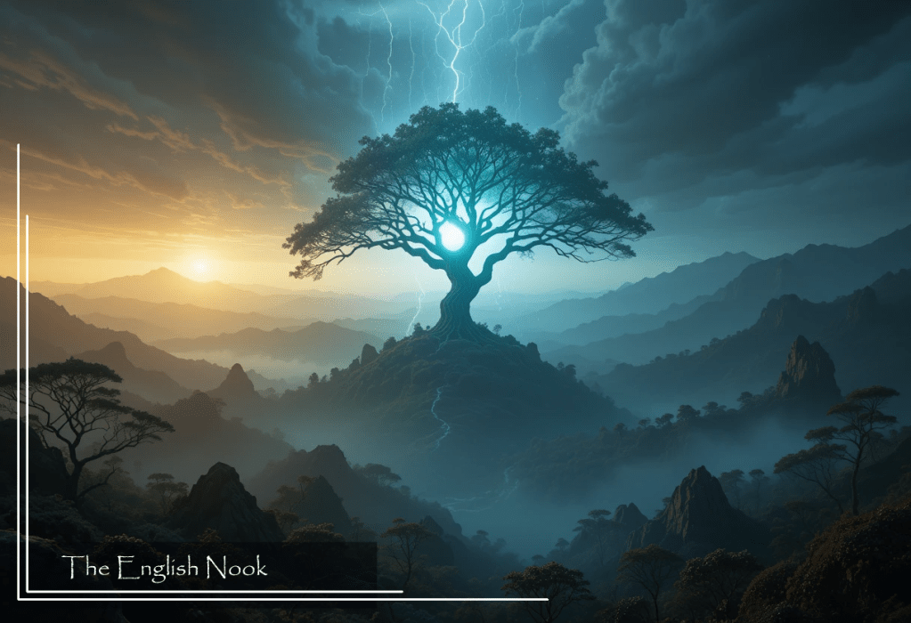 Con un último aliento de determinación, dio el paso final hacia el abismo que rodeaba el árbol. Al hacerlo, sintió cómo cada parte de su ser se desvanecía, una a una: su nombre, sus recuerdos, el rostro de su hija. Solo permanecía el amor, puro e incorruptible, antes de que incluso eso se transformara en un destello de luz.