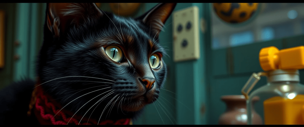 En el escaparate, rodeado de hámsters hiperactivos y un loro deprimido que recitaba tangos, lo esperaba un gato negro. No cualquier gato. Este tenía el pelaje como obsidiana líquida, los ojos dorados como doblones de pirata y una mirada tan directa que Martín sintió, por primera vez en años, que alguien lo había examinado a fondo… y desaprobado silenciosamente.