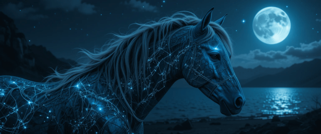 Instead, it showed her as she was. Hornless. Tired. Weather-worn. And yet… luminous. Strong. The journey, etched into every step of her stance. Every scar a starlight. Every breath a choice.
