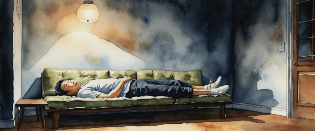 He lay down on the futon and stared at the ceiling. The light fixture flickered faintly, struggling against the dark.