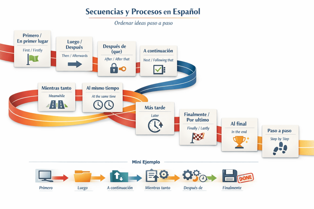Sequencing language in Spanish is rich, flexible, and highly contextual. While many expressions map neatly onto English equivalents, Spanish often allows more variation in word order and tone, especially in spoken language.