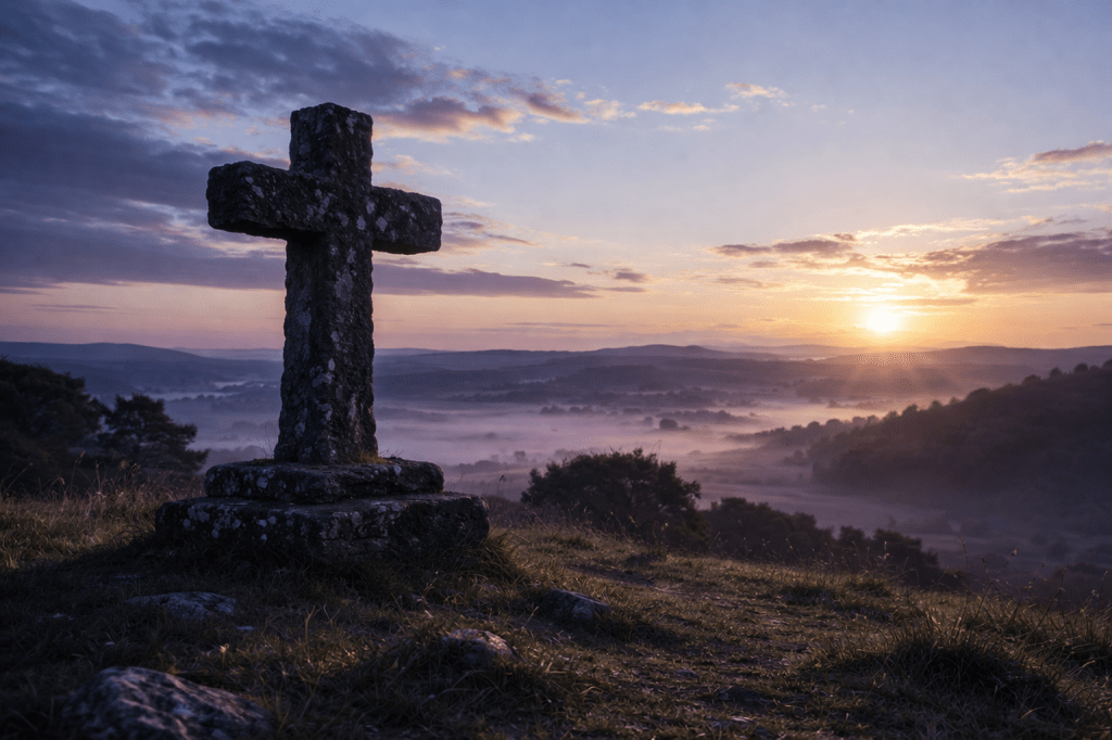 The man stood up slowly and looked around as if he were seeing the hill for the first time. The trees were no longer shadows. The path was no longer a dark line. The stone cross beside him was warm with the first light of the sun.