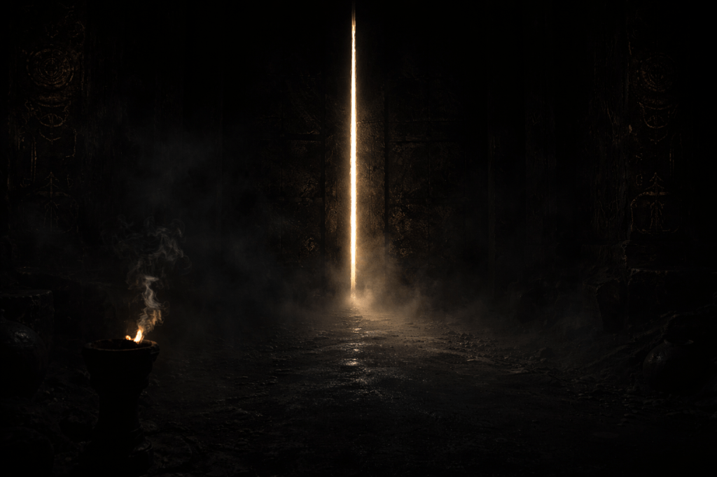 And from the darkness beyond the doorway, a voice—dry, ancient, patient—whispered: